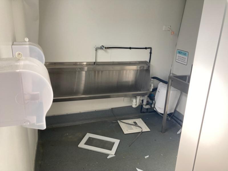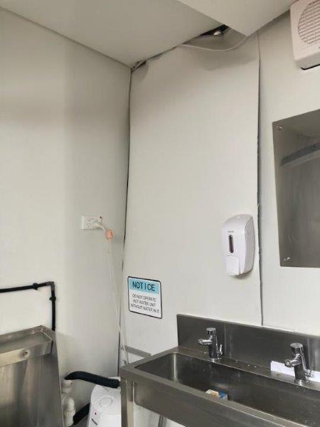 Insurance Claim - Portable Large Container Type Ablution Block Mens & Ladies Plus Amenities, Urinal, Wash Basins - Suffering Slight transit Damage To One Corner - Still Operational - Replacement Cost $61,000 - Location Wacol Brisbane - Buy Now $11,500